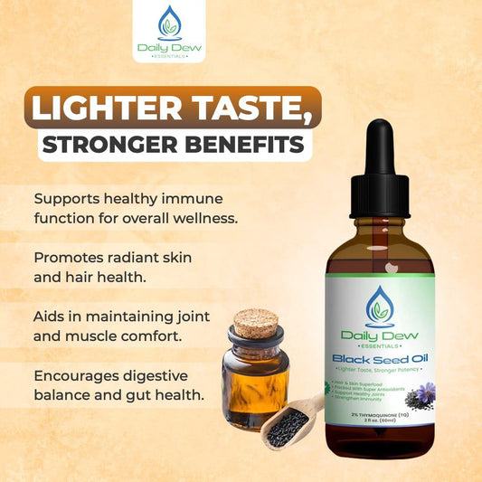 "I've been using this black seed oil for about two weeks now, and I can already feel a difference! Not only has my skin become smoother and clearer, but I’ve noticed an improvement in my energy levels too. The oil absorbs quickly without leaving a greasy residue, which I love. I’ve been taking it both topically and internally, and I’ve experienced fewer headaches and better digestion. The quality of this product is top-notch – no harsh chemicals or additives. I highly recommend it to anyone looking for a natural health boost!"